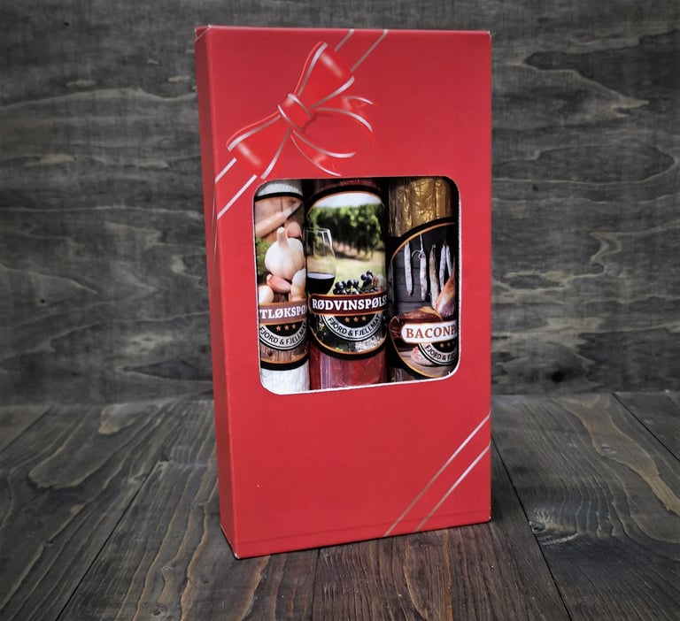 En flott gaveeske med våre tre mest solgte spekepølser.